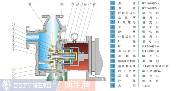 ZMD氟塑料自吸式磁力泵為公司推出新一代耐腐蝕自吸磁力泵,它不但集氟塑料磁力泵的優(yōu)點(diǎn)于一身,而且大的功能是可以自吸、無(wú)泄漏,這是以往的所有氟塑料磁力泵不能達(dá)到的。該系列泵可廣泛適用于化工、有色金屬冶煉、農(nóng)藥、制酸制堿、造紙、酸洗工藝、稀土分離、電鍍、電子、化成箔、卸酸堿等行業(yè)或工作流程,是目前磁力泵品種中結(jié)構(gòu)新穎的產(chǎn)品之一,且高效節(jié)能、**實(shí)用。 該泵的適用溫度:-20°C-100°C。ZMD氟塑料磁力泵采用電機(jī)直聯(lián)式結(jié)構(gòu),由中間支架支撐,結(jié)構(gòu)緊湊,拆卸維護(hù)方便,采用高性能磁性材料“釹鐵硼”制造內(nèi)外磁體,隔離套采用進(jìn)口非金屬材料, 徹底消除了一般磁力泵具有的磁渦流損耗,可輸送高濃度,密度大于1.84t/m3的強(qiáng)腐蝕介質(zhì);主要部件采用鋼襯F46,泵體強(qiáng)度高,能耐所有強(qiáng)酸,強(qiáng)堿的腐蝕; 產(chǎn)品充分結(jié)合了磁力泵與自吸泵的優(yōu)點(diǎn),是在IMD磁力泵的基礎(chǔ)上延伸開(kāi)發(fā)出來(lái)的產(chǎn)品,突出的特點(diǎn)是既具有自吸泵的自吸功能又有磁力泵的無(wú)泄漏、運(yùn)轉(zhuǎn)寧?kù)o的優(yōu)點(diǎn),是液下泵好的替代產(chǎn)品。特別適合于輸送易燃、易爆、有毒、有揮發(fā)性及貴重介質(zhì)。現(xiàn)已批量投放市場(chǎng),在很多項(xiàng)目上替代了進(jìn)口磁力泵。ZMD氟塑料磁力泵廣泛適用于石油化工、有色金屬冶煉農(nóng)藥、制酸制堿、造紙、酸洗工藝、稀土分離、電鍍、電子,化成箔等行業(yè)吸取輸送低于泵安裝位置以下的腐蝕性液體。