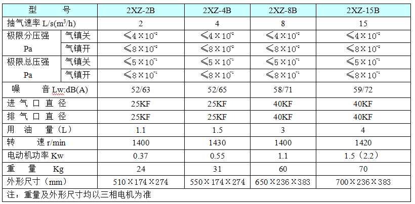 2XZ-B型雙級(jí)旋片式真空泵具有體積小、重量輕、噪聲低、真空度高 、起動(dòng)方便等優(yōu)點(diǎn), 此外,還有防止返油的措施和無防止油封漏油污染場(chǎng)地的措施。這樣,用戶可以避免安裝電磁充氣閥,該泵所有密封均用氟橡膠,保證不漏油,油箱頂部均采用“O”型圈密封。2XZ-B型泵裝有氣鎮(zhèn)閥,具有延長(zhǎng)泵油使用時(shí)間和防止泵油混水的作用。