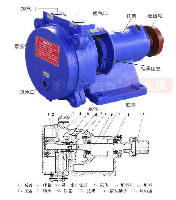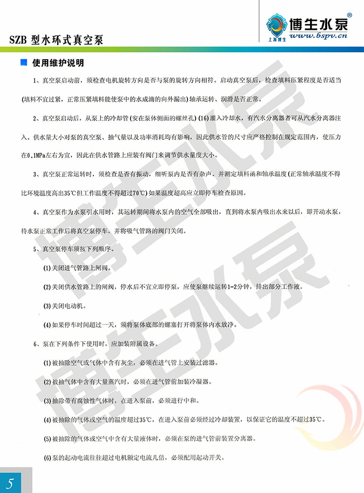 SZB懸臂式水環真空泵為單級單吸懸臂式水環真空泵,泵的出、入口對稱偏心向上。可供抽吸空氣或其它無腐蝕性、不溶于水、不含固體顆粒的氣體。吸入壓力為-0.086Mpa。目前制造的SZB型水環式真空泵型號有:SZB-4、 SZB-8。其中4(8)表示當柱高為520毫米時的氣量(升/秒)。