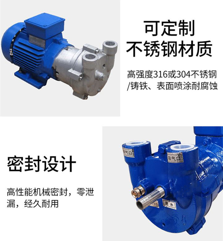 結(jié)構(gòu)簡單,制造精度要求不高,容易加工。結(jié)構(gòu)緊湊,泵的轉(zhuǎn)數(shù)較高,一般可與電動(dòng)機(jī)直聯(lián),無須減速裝置。故用小的結(jié)構(gòu)尺寸,可以獲得大的排氣量,占地面積也小。壓縮氣體基本上是等溫的,即壓縮氣體過程溫度變化很小。由于泵腔內(nèi)沒有金屬磨擦表面,無須對泵內(nèi)進(jìn)行潤滑,而且磨損很小。轉(zhuǎn)動(dòng)件和固定件之間的密封可直接由水封來完成。吸氣均勻,工作平穩(wěn)可靠,操作簡單,維修方便