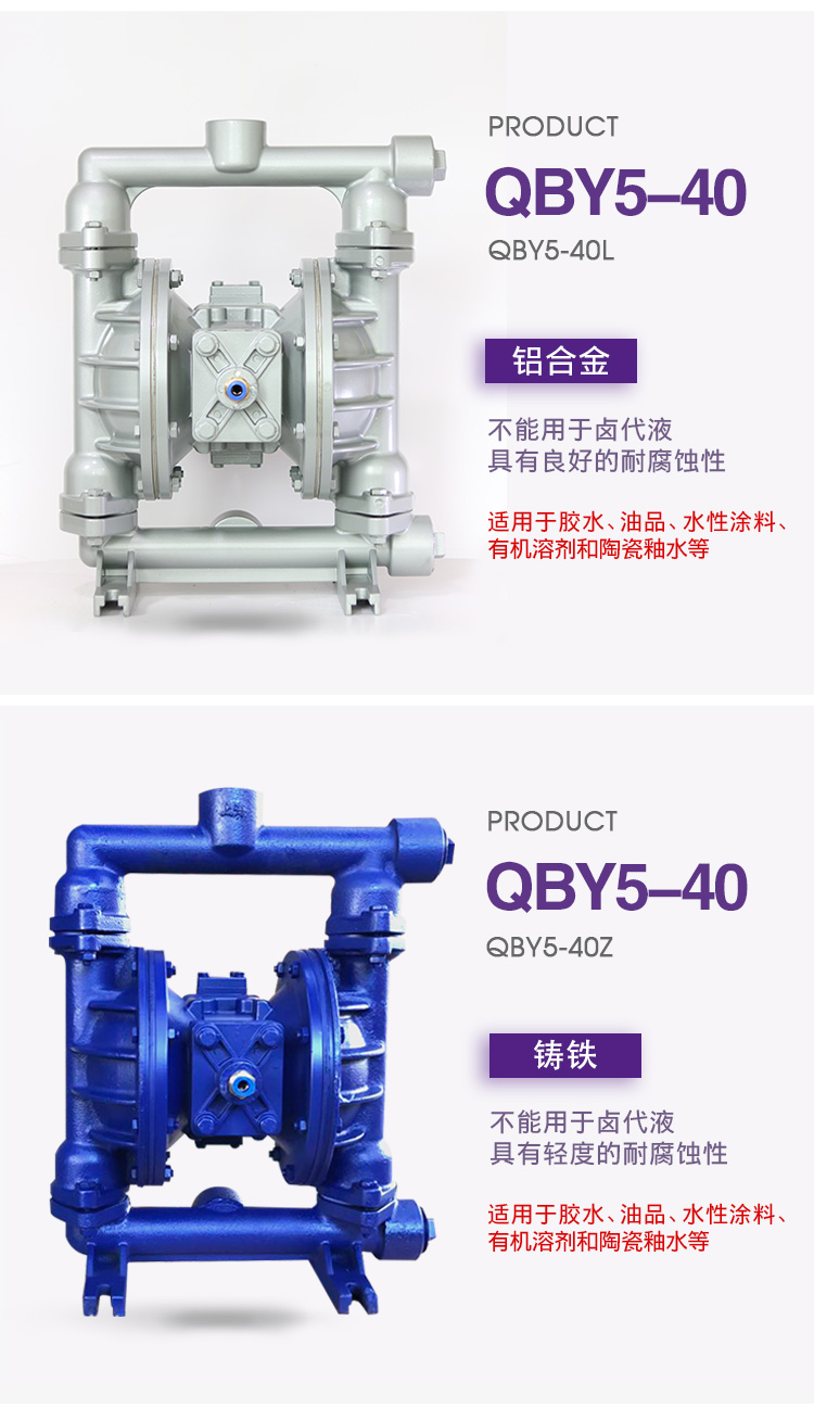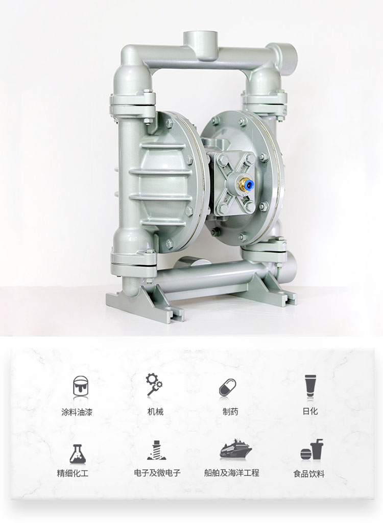 上海博生水泵QBY5-40L型鋁合金氣動隔膜泵,油墨泵,耐腐蝕氣動隔膜泵,污水排污氣動隔膜泵系列第五代氣動隔膜泵是一種新型輸送機械,采用壓縮空氣為動力源,對于各種腐蝕性液體,帶顆粒的液體,高粘度、易揮發、易燃、劇毒的液體,均能予以抽光吸盡。其性能參數與聯邦德國的WLLDENPVMPS、美國的MARlOWPUMPS相近。