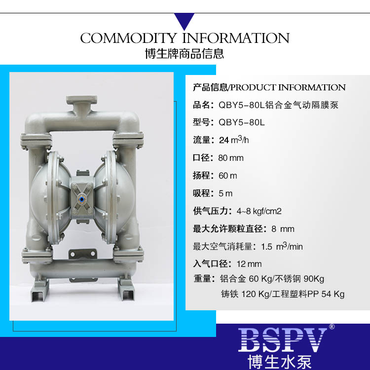上海博生熱銷第五代上海博生水泵博生牌QBY5-80L型鋁合金氣動隔膜泵 上海輸液提升氣動隔膜泵,化工泵,耐腐蝕氣動隔膜泵,進口隔膜泵如用戶有特殊要求。上海博生水泵博生牌QBY5-80L型鋁合金氣動隔膜泵 上海輸液提升氣動隔膜泵上海氣動隔膜泵,化工泵,耐腐蝕氣動隔膜泵,工業化工隔膜泵,污泥泵隔膜泵聯系博生客服以方便用戶選型,正確使用氣動隔膜泵。QBY5型氣動隔膜泵永不卡機,無油氣動隔膜泵,高吸程高流量隔膜泵,完全進口隔膜泵媲美。